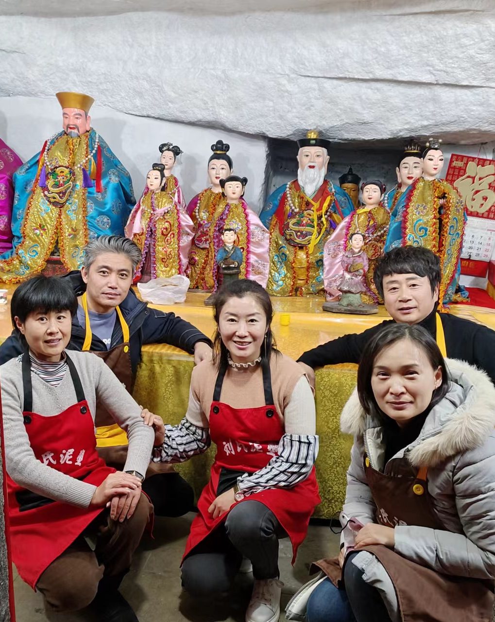 2022年12月3日,刘氏泥塑工作室一行五人应邀来到崂山区王哥庄街道雕龙嘴社区位于半山腰上的寂光洞,着手修复洞中胡老仙师、胡三太爷、胡三太奶、七师傅、胡仙姑等13尊神像,修补破损部位并重施面部彩绘。