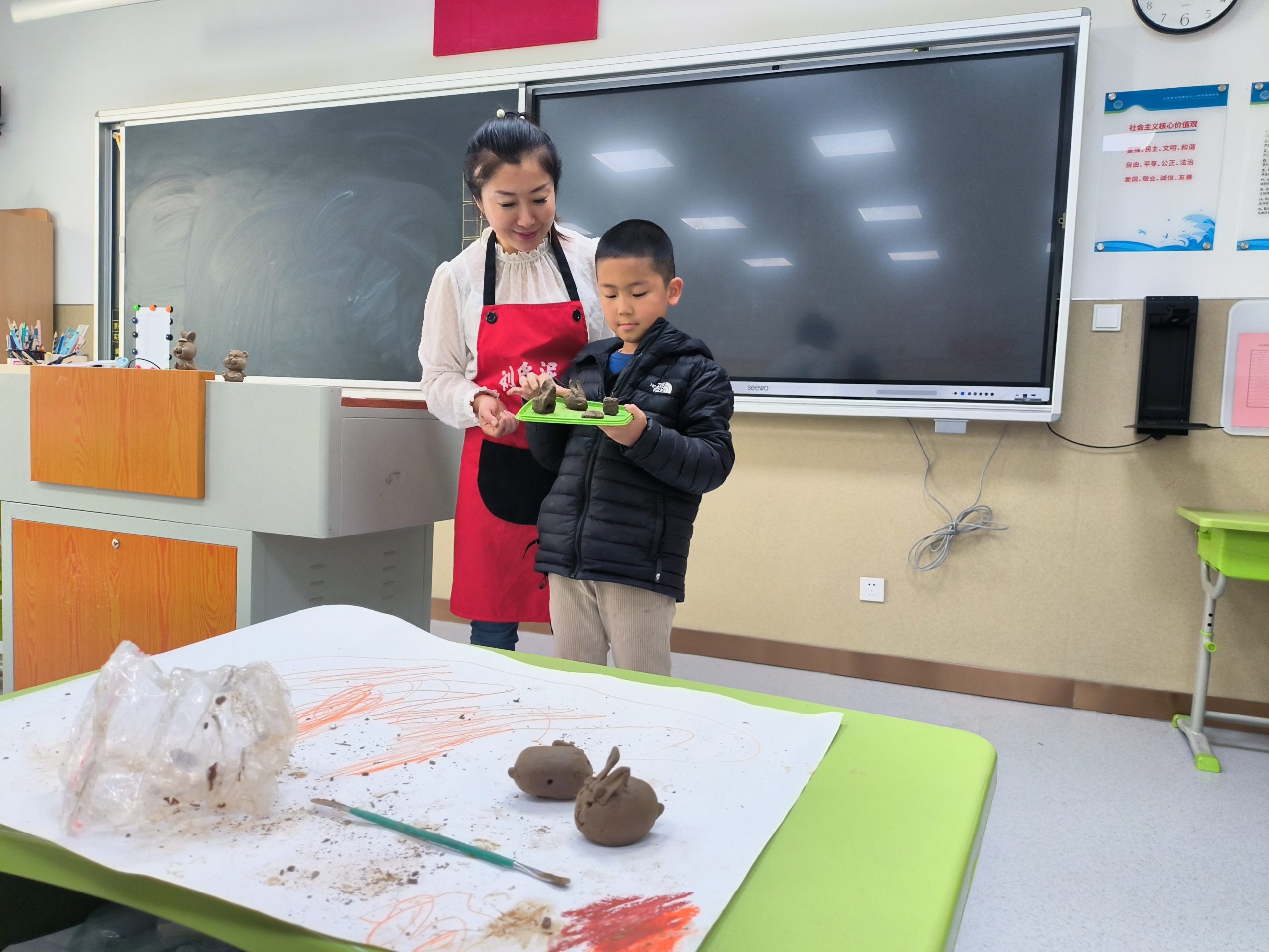 同学们充分发挥想象力和创造力,有的做了兔子大家庭,有的做了兔子生活场景,有的给兔子盖了房子,也有为兔子准备了食物和玩具,一个小时下来,琳琅满目的兔子跃然桌上。