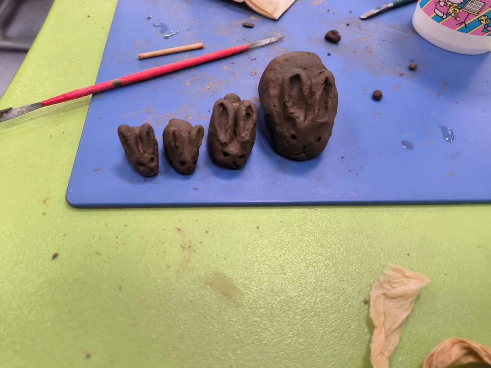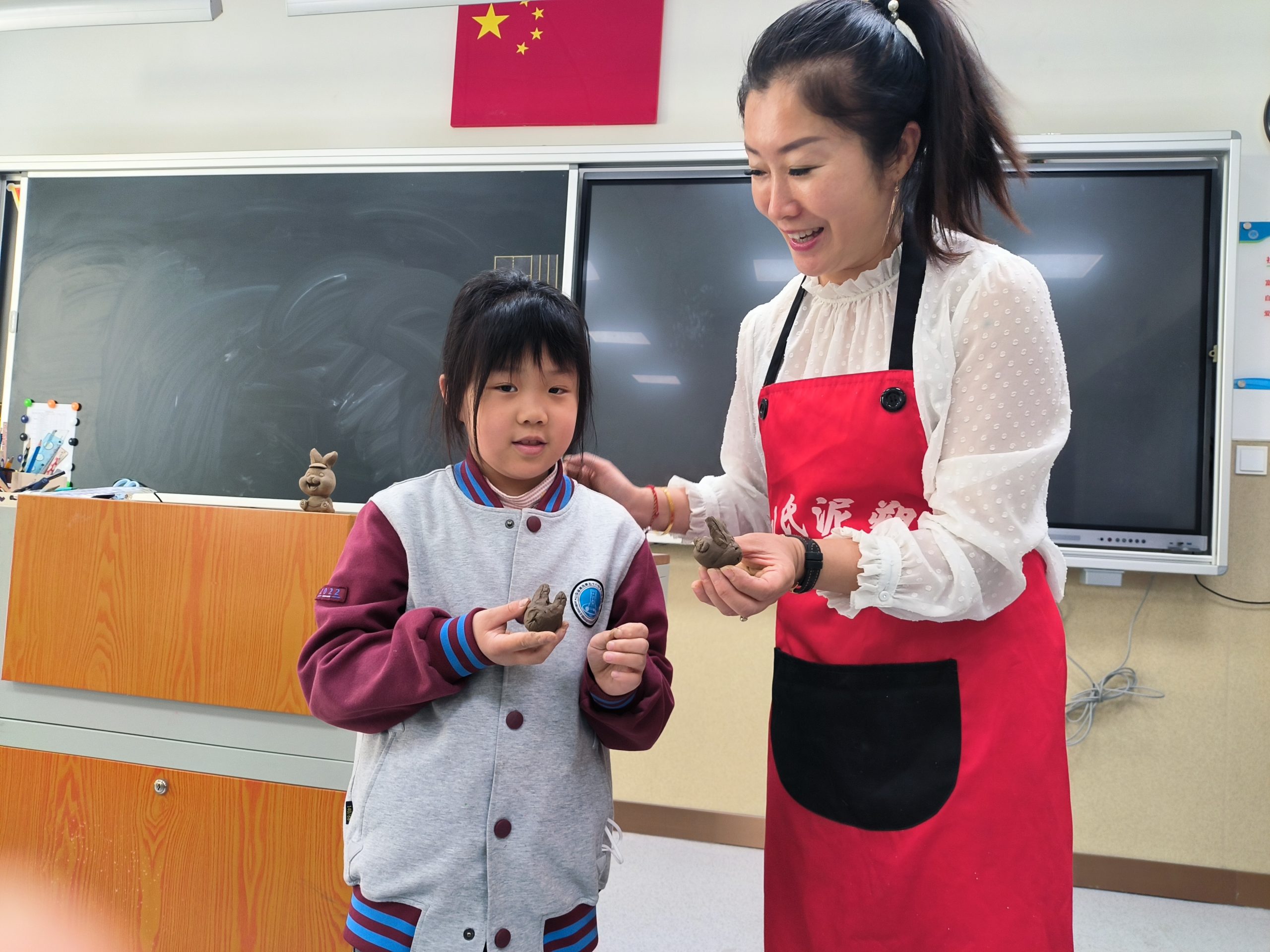2023年4月7日,在青岛58中高新学校多彩社团班同学们的热切期盼中,刘氏泥塑非遗课堂如期而至,刘梅玲老师给同学们带来了小兔子制作工艺。