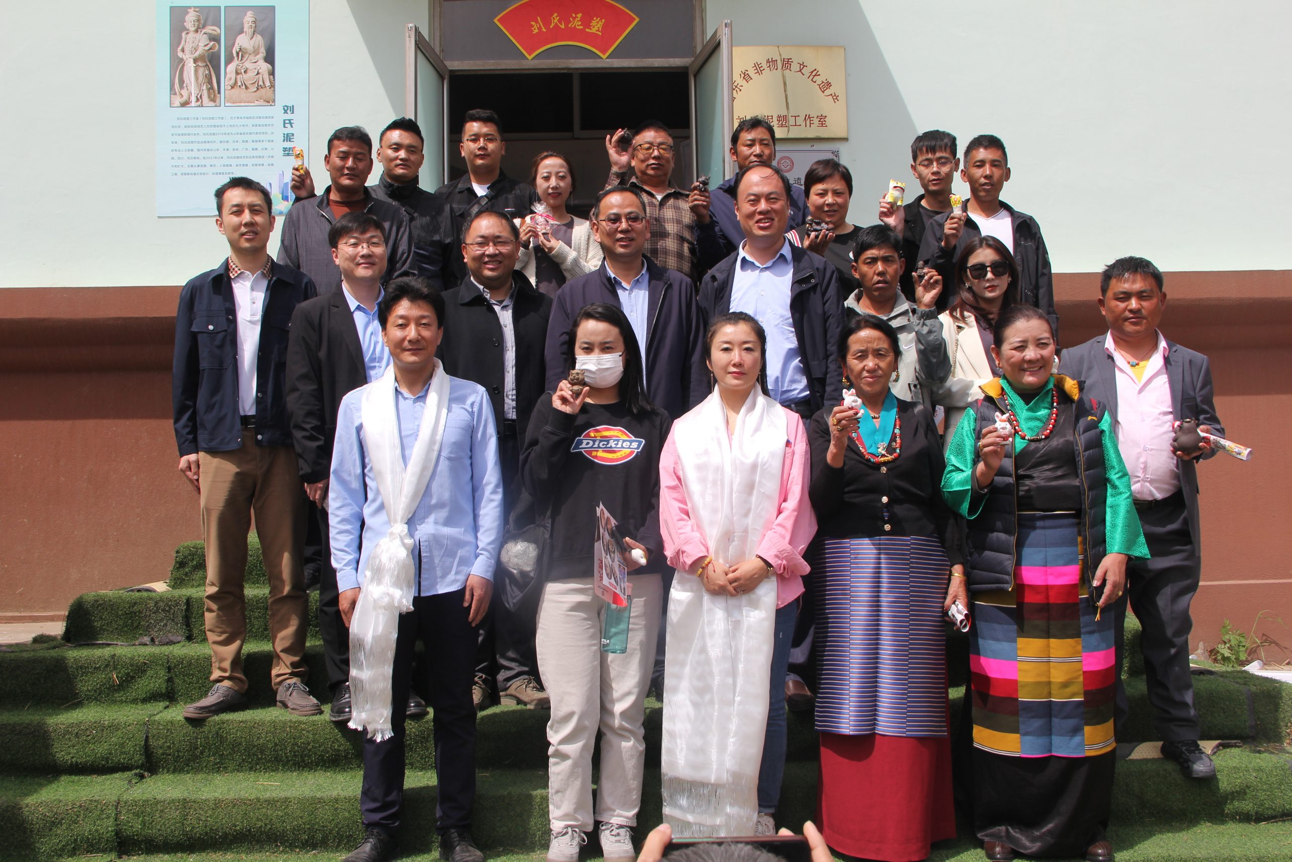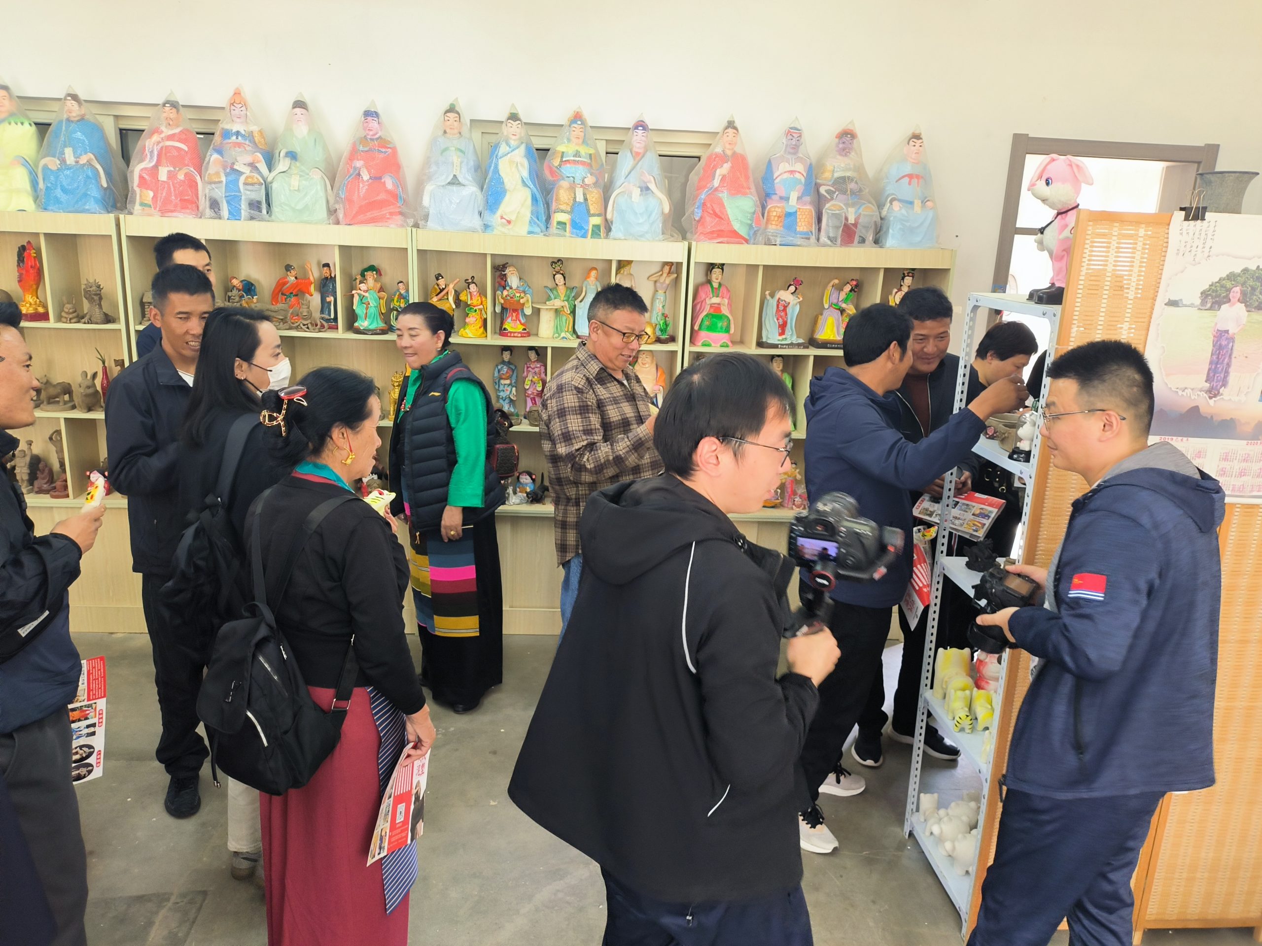 2023年5月8日上午,日喀则市桑珠孜区区委常委、副区长张本成率领桑珠孜区非遗项目传承人考察团一行20余人来到刘氏泥塑工作室参观交流,青岛市文化和旅游局非遗处副处长冯耀东及城阳区文化和旅游局、河套街道办事处相关领导陪同考察交流。考察团详细察看了刘氏泥塑大型人物制作流程、泥塑文创产品工艺、非遗研学开展情况,相关领导就两地合作交流事宜进行了深入交流和洽谈。刘氏泥塑工作室负责人刘梅玲老师向来访的非遗传承人详细介绍了刘氏泥塑的发展历史、泥塑工艺流程和技法、非遗文创产品开发等情况,并让考察团的每位非遗传承人自主选择喜欢的泥塑作品作为青岛之行的纪念品,交流现场气氛异常热烈。桑珠孜区非遗传承人向刘氏泥塑传承人、工作室负责人赠送了哈达和藏香,考察团20余位传承人都拿到了自己心仪的纪念品,活动现场每个人脸上都写满了开心的笑容,考察团热情邀约刘氏泥塑前往日喀则市深入合作交流。