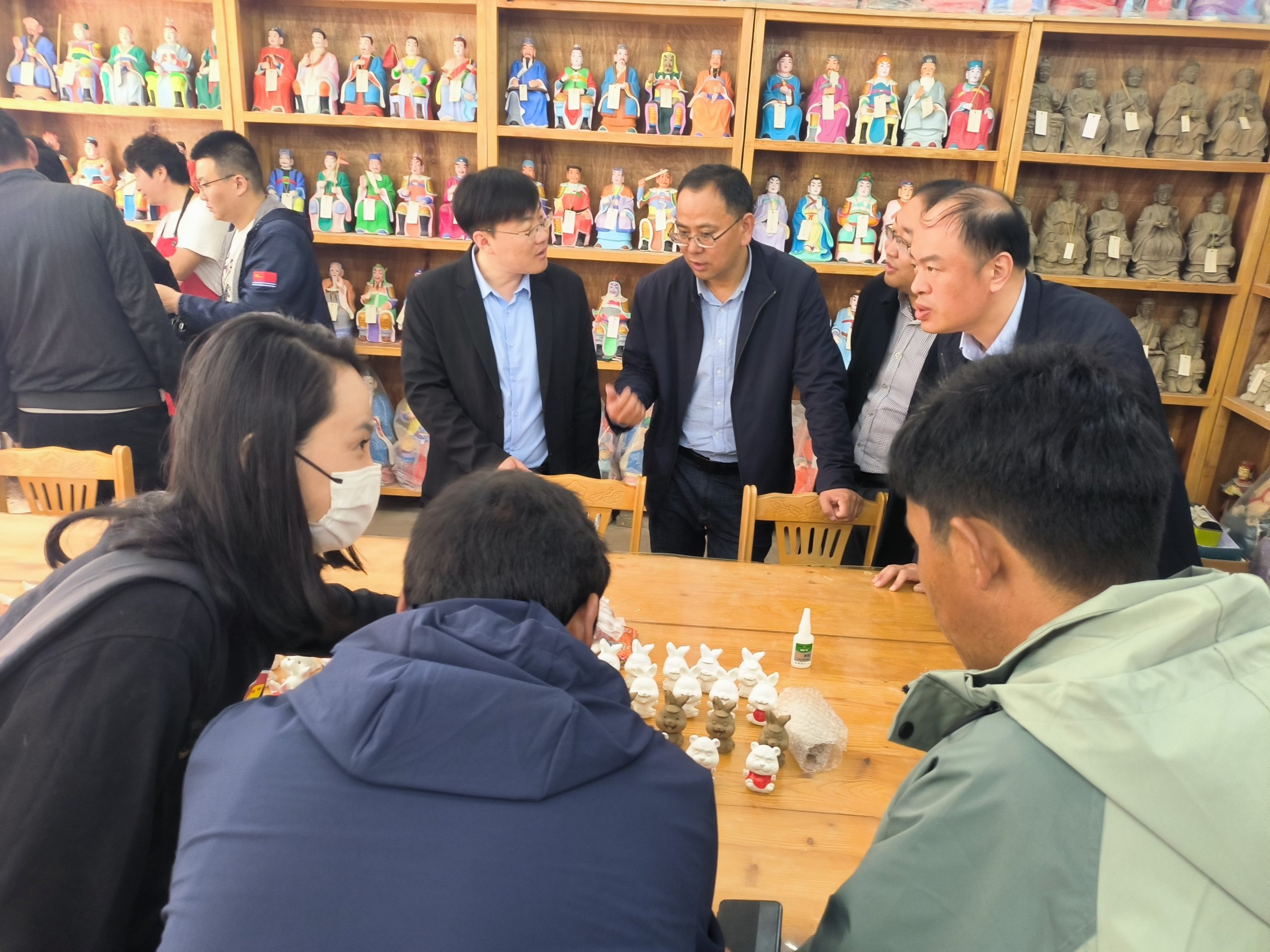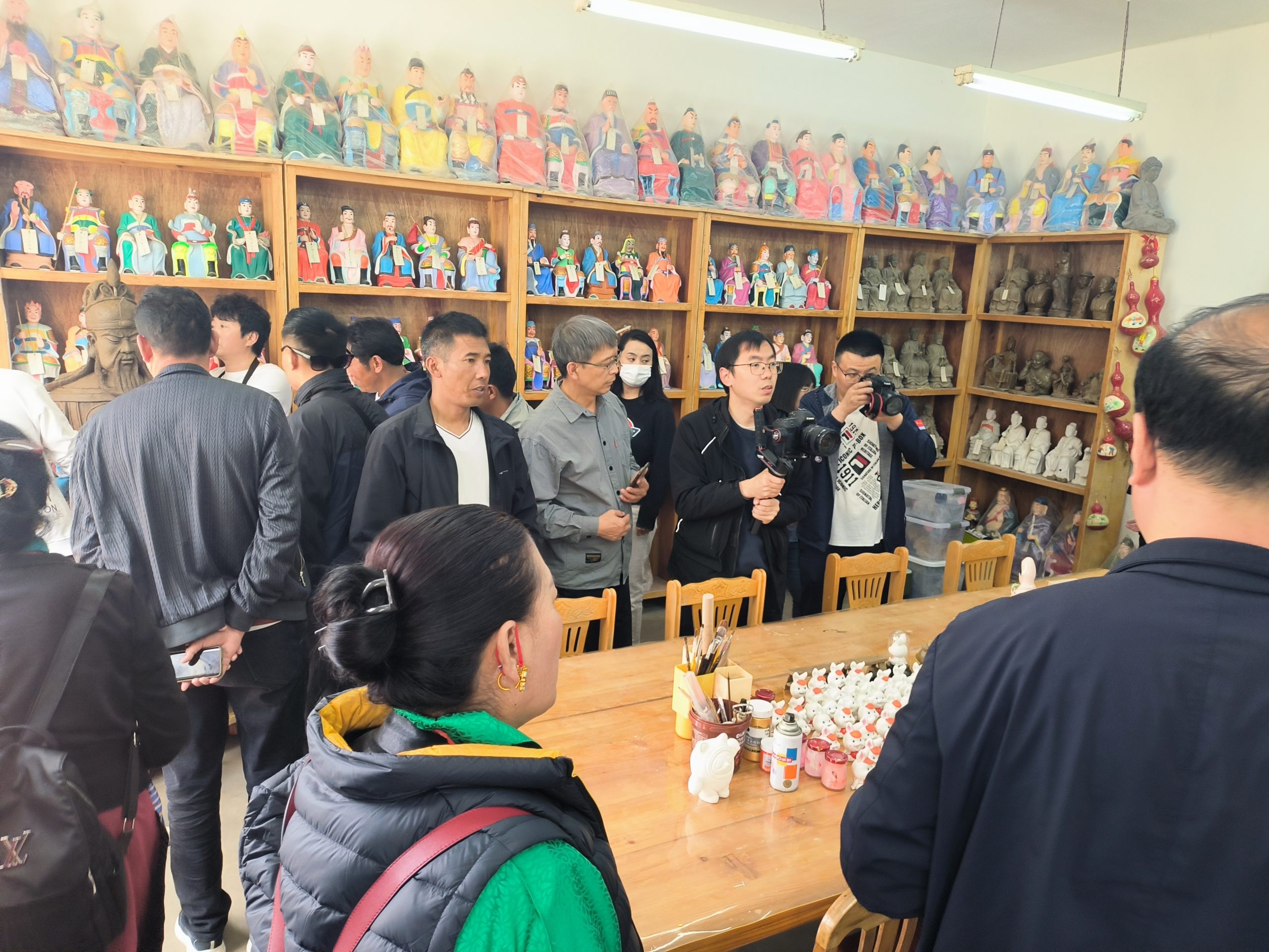 考察团成员详细了解大型泥塑制作工艺和文创产品开发、非遗研学等考察内容。